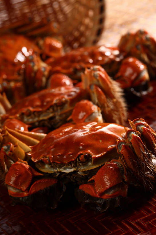 蟹,无人,交叉,竖图,俯视,室内,特写,白天,烹饪,中餐,餐桌,桌子,竹子,阴影,竹制,朦胧,模糊,..._淘图客Talkimages图片库