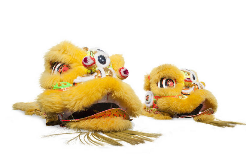 横图,室内,白天,白色背景,正面,舞狮,表演,辟邪,文化,两个,黄色,祈祷,祈福,健康,许愿,摄影,..._淘图客Talkimages图片库